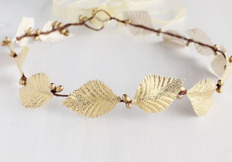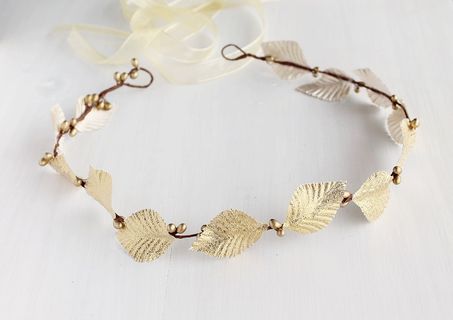 This antique leaves halo is ideal for rustic, woodland or outdoor weddings. Perfect for gold themed weddings, for brides, as a bridesmaids or flower girls hair accessory.