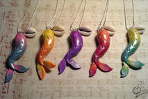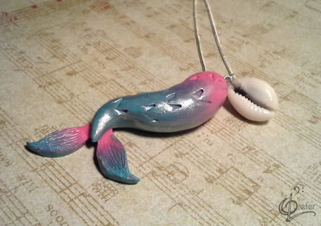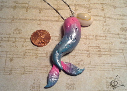 This listing is for a polymer clay pink and light blue enchanted mermaid tail necklace. It has been hand sculpted with the utmost precision and detail and then coated with a glossy shimmer glaze. This unique necklace will add a unique flair to any outfit!