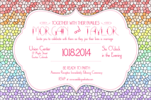 This listing is for one personalized , DIGITAL, printable copy, Stained Glass Rainbow wedding invitation. Personalized with your event information. This casual wedding invitation measures 4x6 inches. Fun, bright, colorful. Perfect for when you love colors so much you just want them all!