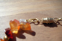 COMPONENTS: Carnelian, gold plated beads, gold plated clasp and jewellery wire