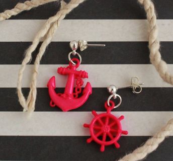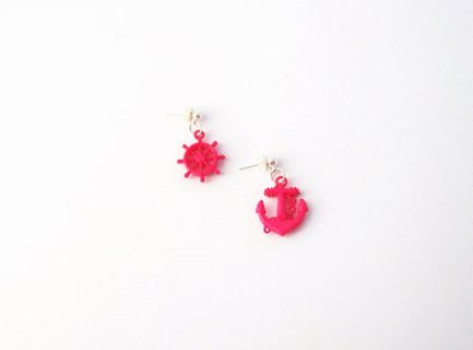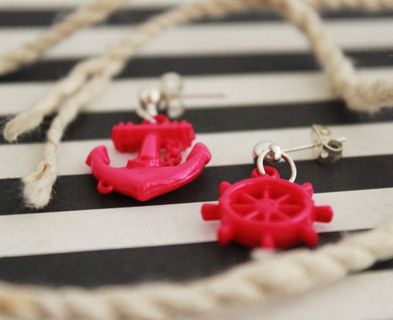 Featuring an anchor and helm in hot pink these earrings are ever so eye catching!