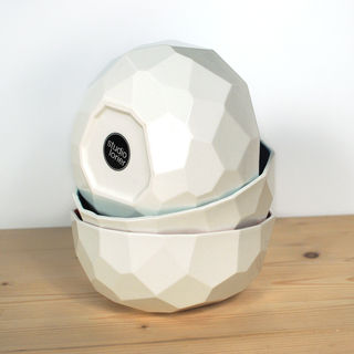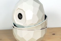 Porcelain tableware at a low resolution. Instead of smooth shapes, this pottery is build up out of polygons. Every product is unique and handmade, so it will be a great eye-catcher in a modern interior. It has a very surprising shape, and holds firmly. Made in high quality glazed porcelain, for a long lifetime at a daily use.