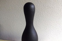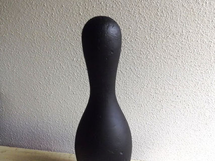 I've given this bowling pin a new look and purpose with a new coat of black chalkboard paint. This is a real, used, vintage or almost-vintage bowling pin, so it comes complete with nicks and dents from it's previous life at a bowling alley.
