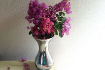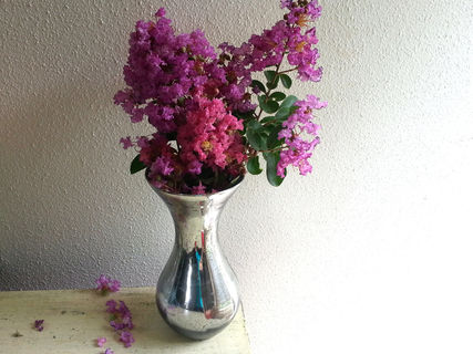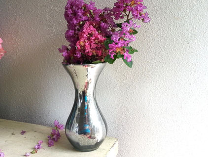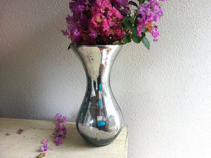This mercury glass vase has a beautiful shape, and is hand painted and distressed for a beautiful mercury glass finish.