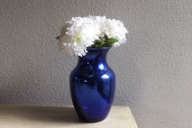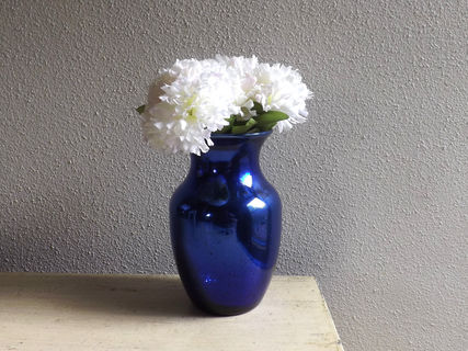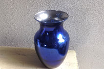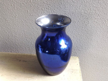 This beautiful deep blue mercury glass vase is hand painted with reflective silver and distressed for a beautifully reflective mercury glass finish.