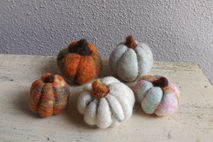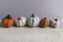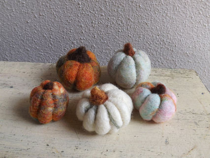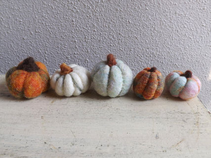 Each of these 5 felted wool pumpkins is made by me with a mixture of wet and needle felting techniques. This is a group of small pumpkins, measuring about 1.25 - 2 inches tall, in a variety of colors.