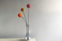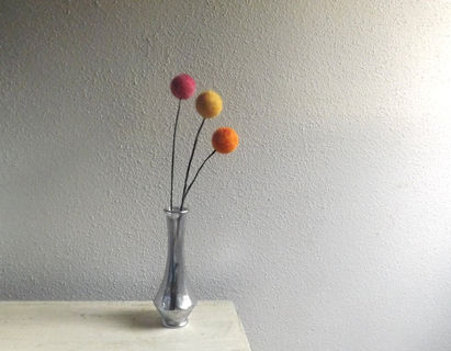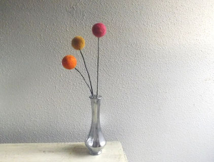 Each wool ball is felted by me in 3 different fall shades: red, orange, and yellow, and attached to an 18 inch wrapped flexible floral wire stem. (vase pictured is not included).