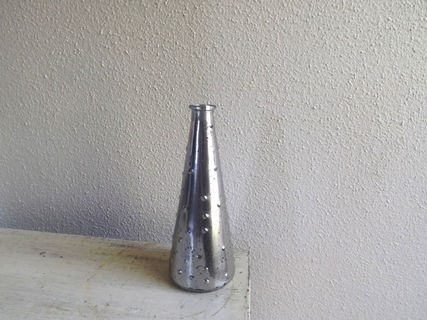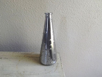 I've hand painted and distressed this bud vase to give it a mercury glass look. It's bumpy texture and shape adds interest to the silvery mercury glass finish.
