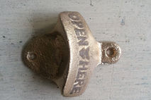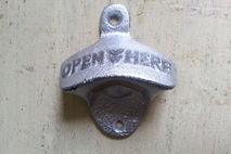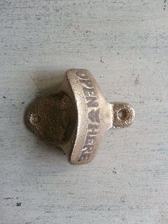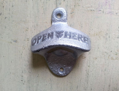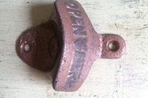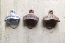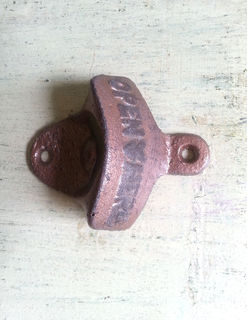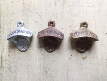I hand paint and distress this cast iron wall mounted bottle opener in the metallic color of your choice.