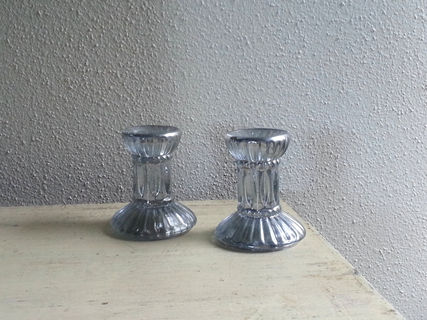 I've hand painted and distressed this pair of mercury glass candlestick holders for an aged mercury glass look. They are 3 inches high.