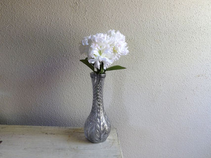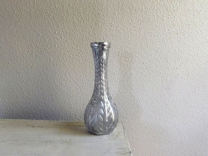 I've hand painted and lightly distressed this lovely bud vase to give it a mercury glass look.