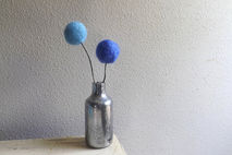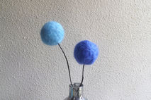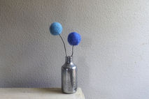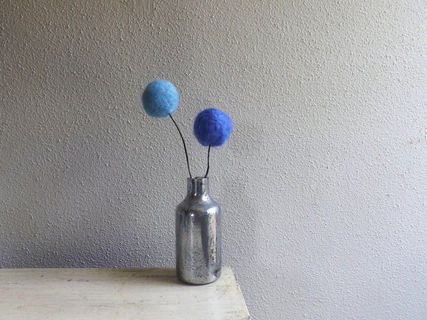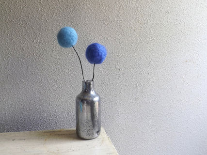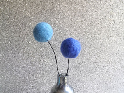 Each wool ball is hand needle felted by me in 2 different shades of blue, and attached to an 18 inch wrapped flexible floral wire stem.