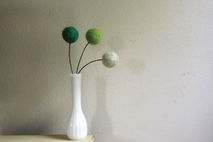 This set of 3 large (about 2 inch) wool pom pom flowers are a great modern, minimalist version of a floral arrangement.