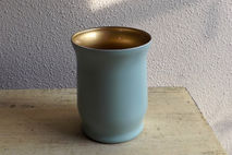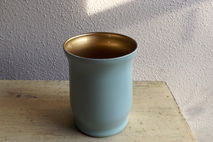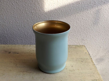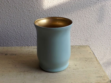 I've painted this glass vase for a beautiful two-toned effect - beautiful minty blue shows on the outside, with gold showing on the inside. No paint is actually inside the vase, so it is completely safe for floral use.
