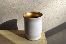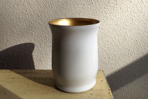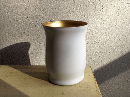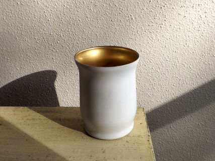 I've painted this glass vase for a beautiful two-toned effect - white shows on the outside, with gold showing on the inside. No paint is actually inside the vase, so it is completely safe for floral use.