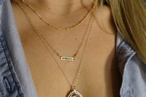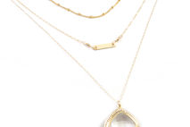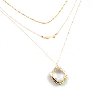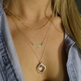 Minimal layers add some sparkle to any outfit! The top satellite chain is 14k gold filled and adds great pattern and texture to this set. The simple gold-filled bar in the middle is suspended from a gold filled chain. The bottom layer is very David Yurman-esque with a clear, framed glass pendant. Each component can be purchased individually so you can mix and match these with your favorite necklaces. I can also combine all three of these necklaces onto a single chain to minimize clasps sliding around - just send me a message if this is something you'd be interested in! Thanks for shopping!