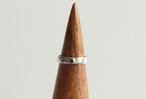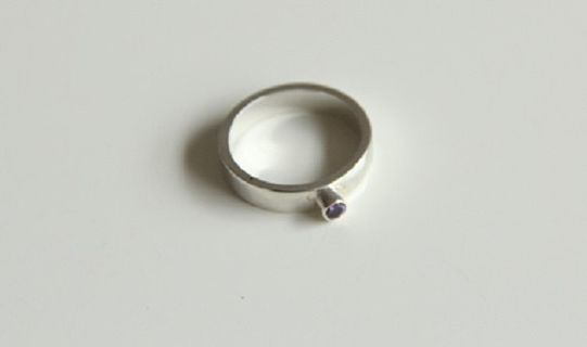 Sterling Silver Band Ring with Violet Cubic Zirconia