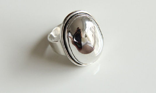 Sterling Silver Large Oval Statement Minimalist Wide Band Ring