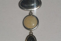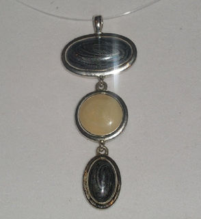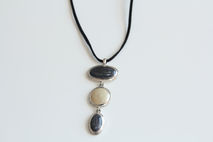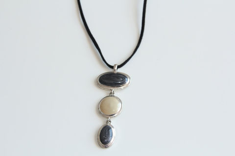 Gunmetal Grey Cream Statement Hanging Oval & Circle Pendant comes on your choice of necklace, sterling silver chain or leather cord.