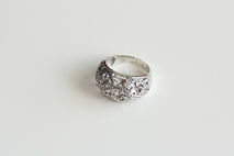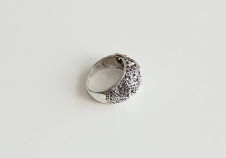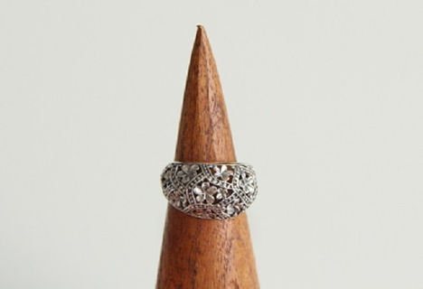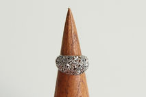 Sterling Silver Small Oxidised Frangipani Filigree Chain Statement Ring