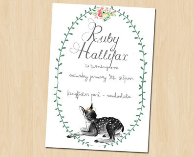 This simple yet sweet woodland deer design birthday invitation can be customised for any occasion.