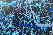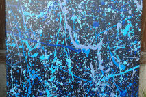 Original hand crafted heavy textured splash painting in the style of Jackson Pollock, made with several colour spray paints, sprayed into a spray paint lid and randomly splashed over a black painted canvas until balanced.