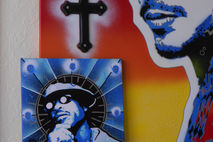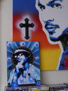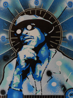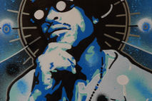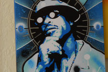 painting of hip hop legend guru from the group gangstarr.painted using handcut stencils and spraypaints
