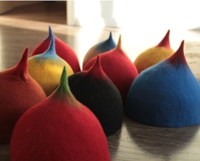 Technique : wet wool felt tailoring. We use all natural wool fibers..