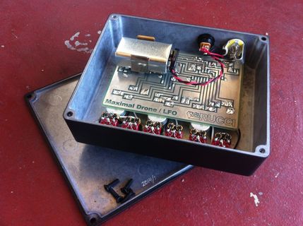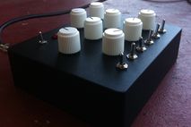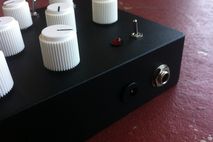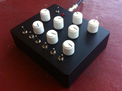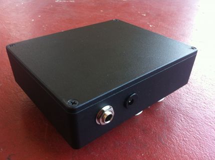 The case is extremely tough die-cast aluminum painted with a durable textured black finish. With a 1/4″ output jack it is easy to connect to amps, effects or recording equipment. It is powered by an included 9volt battery or any 9volt center-negative DC adapter. This was designed and hand-built in Oakland, California.