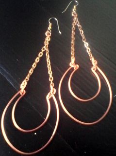 Attract luck with these double horseshoe shaped hoop earrings. These earrings have bought me lots of luck at the slot machines in Vegas. I love them because they are trendy,unique and very lucky. Good fortune will follow anyone that wears them. The pair shown in the picture are handcrafted by yours truly of 100% pure healing copper. All pieces are made to order and ready for shipment within two days. So don't check out before adding a pair or two to your shopping cart.