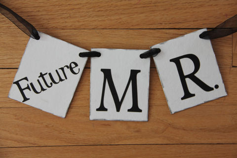 The chipboard with "Future" can be removed after the engagement party so that the signs can also be used for the wedding.