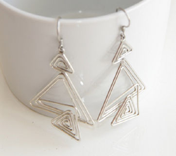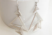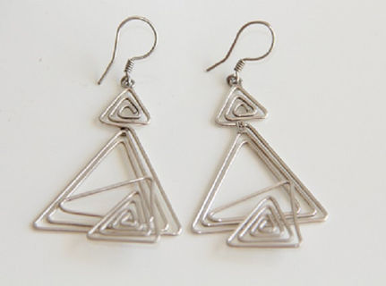Beautiful Sterling Silver Wire Wrapped Abstract Organic Triangle Dangle Earrings, bridal bridesmaid earrings, wedding prom ball jewelry