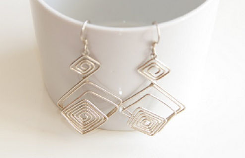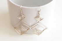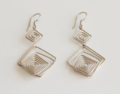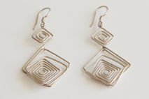 Modern Sterling Silver Wire Wrapped Abstract Square Dangle Earrings