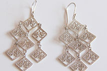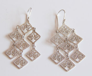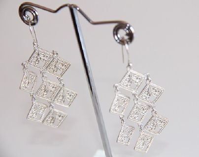 These stunning Sterling Silver Filigree Swirl Diamond Shaped Designer Dangle Earrings are made with quality 925 sterling silver.