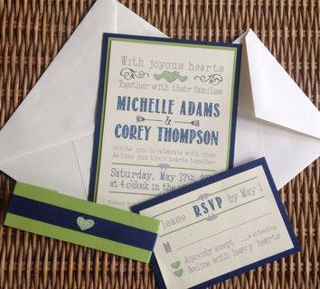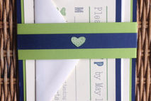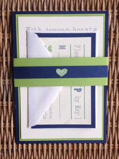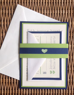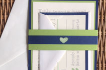 Everything is completely customizable – verbiage on invite and RSVP, font, colors of paper, color of belly band, style of heart label on band. You can pick everything or let me help design something based on the style of your wedding.