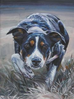 Border Collie Dog CANVAS print of original painting by L.A.Shepard 12x16 inch