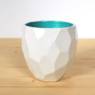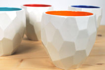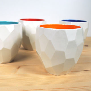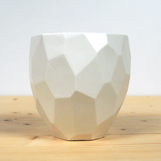 Porcelain tableware at a low resolution. Instead of smooth shapes, this pottery is build up out of polygons. Every product is unique and handmade, so it will be a great eye-catcher in a modern interior. It has a very surprising shape, and holds firmly. Made in high quality glazed porcelain, for a long lifetime at a daily use.