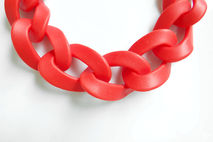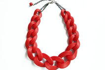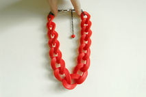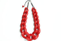 Big chunky chain necklace entirely handmade link by link from polymer clay in bright red, finished with dark antiqued brass chain. Unique yet versatile statement necklace in neutral shade, ideal for color matching with various outfits.
