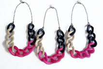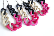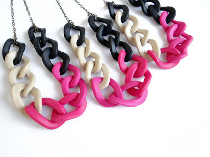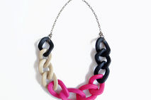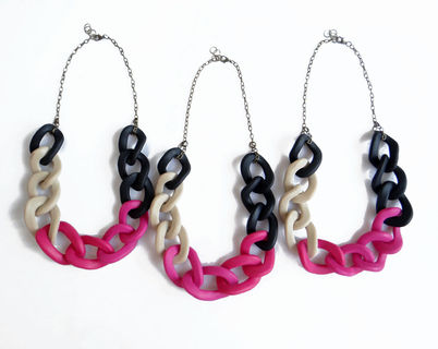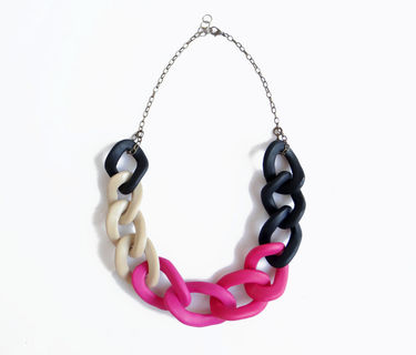 Oversized chain link necklace in an elegant color combination of black, beige and pink. Modern statement necklace, great for adding a color accent to any outfit.