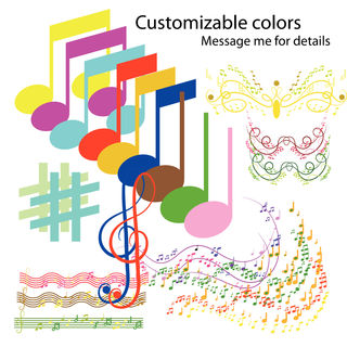 *25 clip arts musical notes each in individual files 300 dpi 7" x 7" PNG files LARGE images, perfect for resizing, with transparent background (png format keeps a transparent background and perfect to use as graphics in most programs) No watermarks, no text.