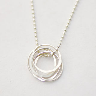 Five, hammered, sterling silver circle collect on a sterling silver bead chain. Simple and energizing!