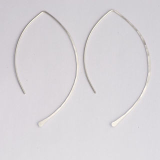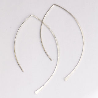 Hammered, lightweight, sterling silver forms an elegant hook. These earrings create flattering, elongated lines while maintaining feminine curves. An everyday favorite!