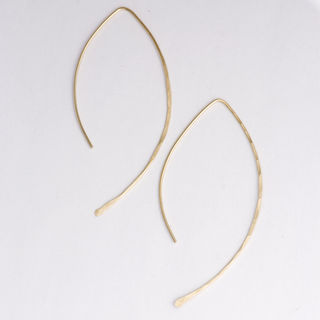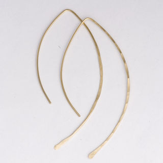 Hammered, lightweight, 14k gold fill forms an elegant hook. These earrings create flattering, elongated lines while maintaining feminine curves. An everyday favorite!