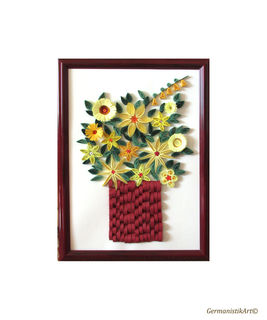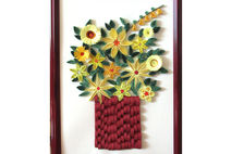 Quilled Yellow Posies in Red Frame, Flowers Quilling Art, Floral Quilling Art, Framed Posies