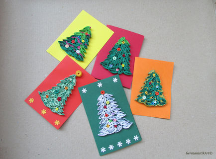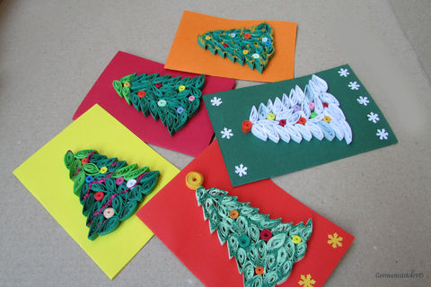 5 beautiful quilling christmas cards in yellow, orange, red, dark red and green.