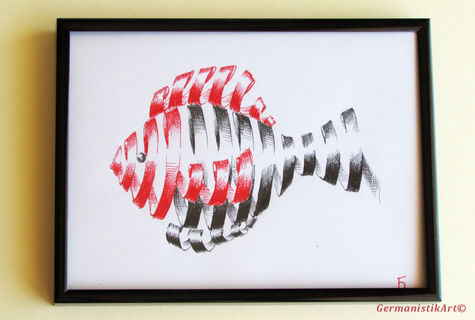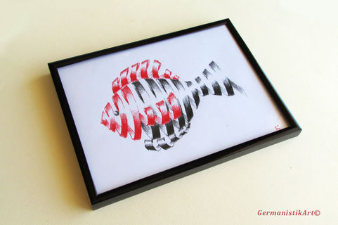 This red black original drawing is perfect for birthday gift (February 19 - March 20 ).