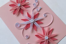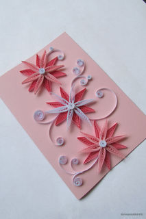 This elegant quilling card with 3 quilled flowers im ombre pink is perfect for birthday card.