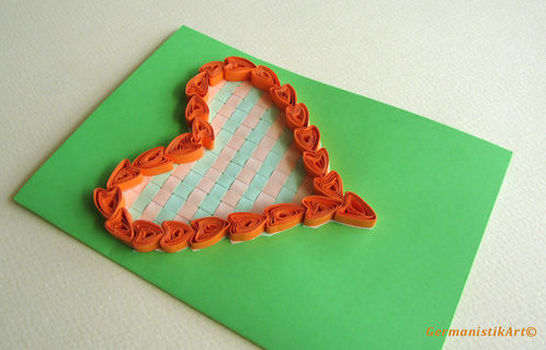 The pretty love heart quilling card with quilled heart is perfect as romantic gift for Valentine's Day.