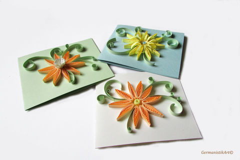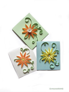Pastel Quilling Flower Card Set, Set of 3 Greeting Cards with Quilled Flowers in Pastel Colors. Vertical orientation