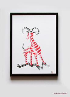 This red black original zodiac drawing is perfect for birthday gift (December 22 to January 20).